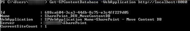 Mount-SPContentDatabase “SharePoint_DEV_MoveContentDB” -DatabaseServer “NEWDBSERVERNAME” -WebApplication http://localhost:8080