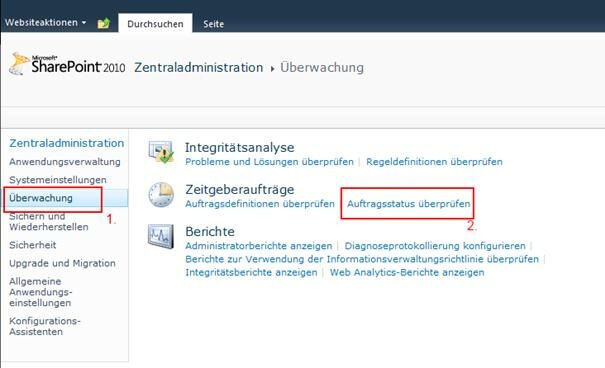 Zentraladministration -> Überwachung -> Auftragsstatus überprüfen