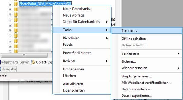 Schritt 4 Inhaltsdatenbank vom SQL Server trennen