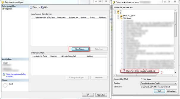 Schritt 6 Inhaltsdatenbank im neuen SQL Server verfügbar machen
