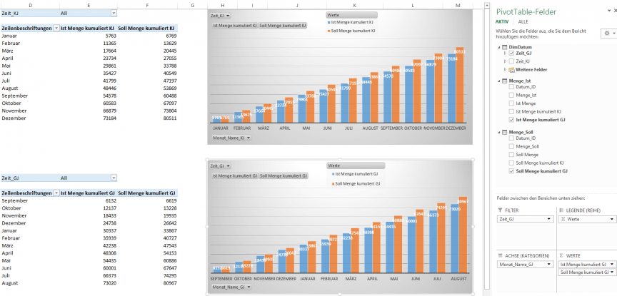 Monatlich kumulierte Werte für Geschäftsjahre mit Power Pivot und DAX in Excel